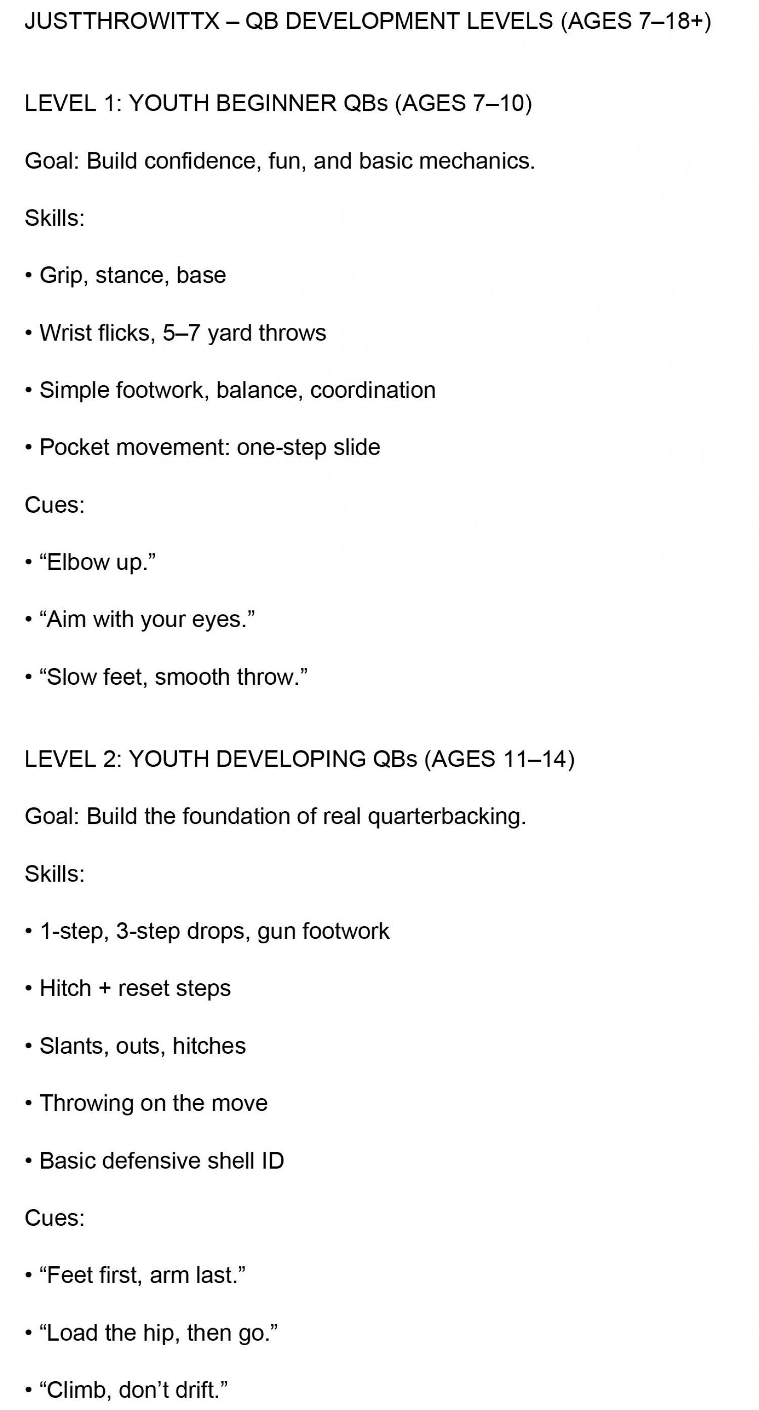 A lot goes into becoming a great football player. You can find training programs for a variety of skills at JustThrowItTx. We offer: